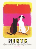 ‘Vertel een iets?’, vraagt de hond. ‘Er komt niets’, zegt de kat. Samen gaan de kat en de hond op zoek naar iets. En naar niets. Maar wat is dat precies? En is het iets slechts, of iets goeds?