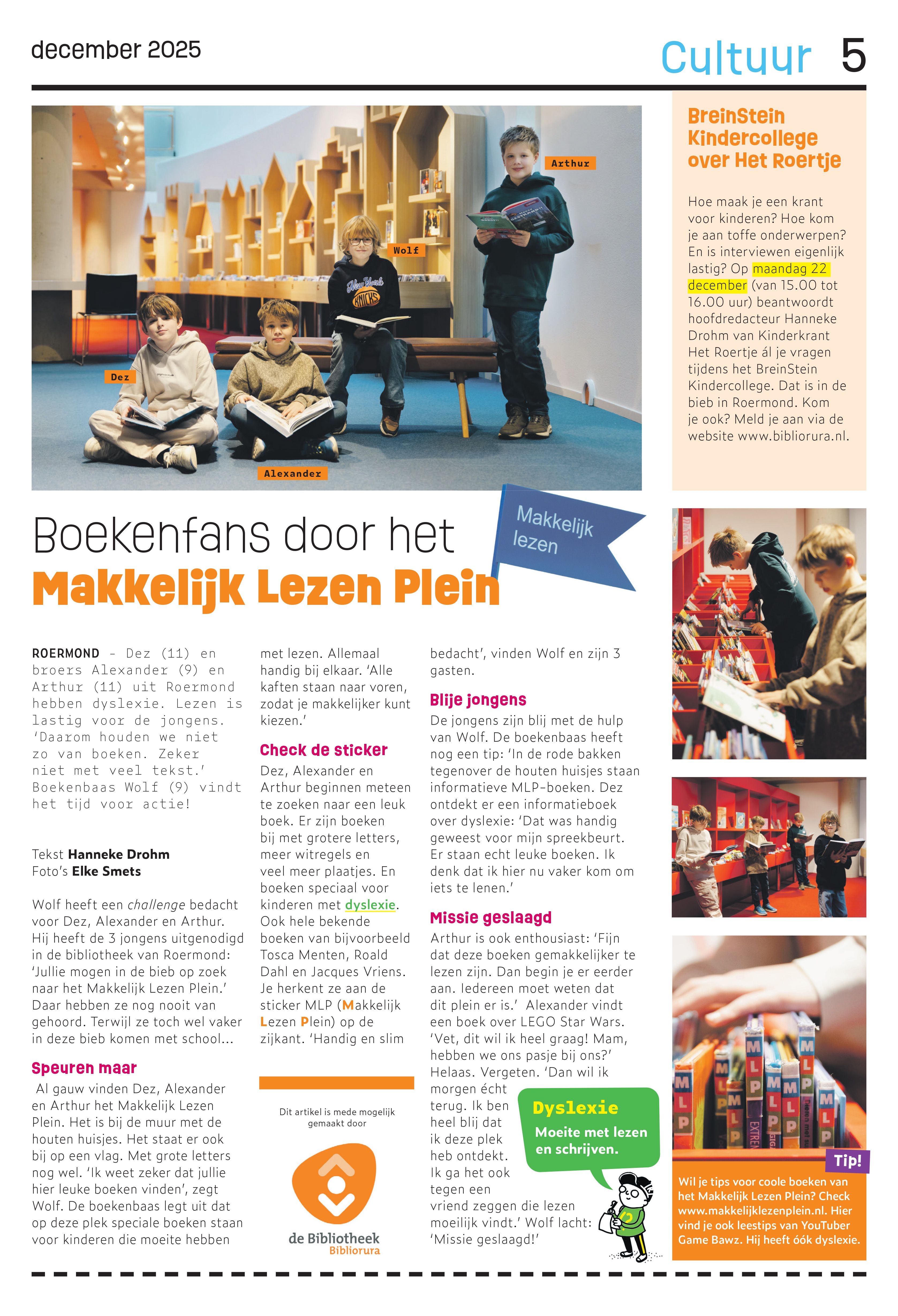 Om ons Makkelijk Lezen Plein bedacht Boekenbaas Wolf een leuke challenge. Er werd zelfs een artikel over geschreven in kinderkrant Het Roertje!